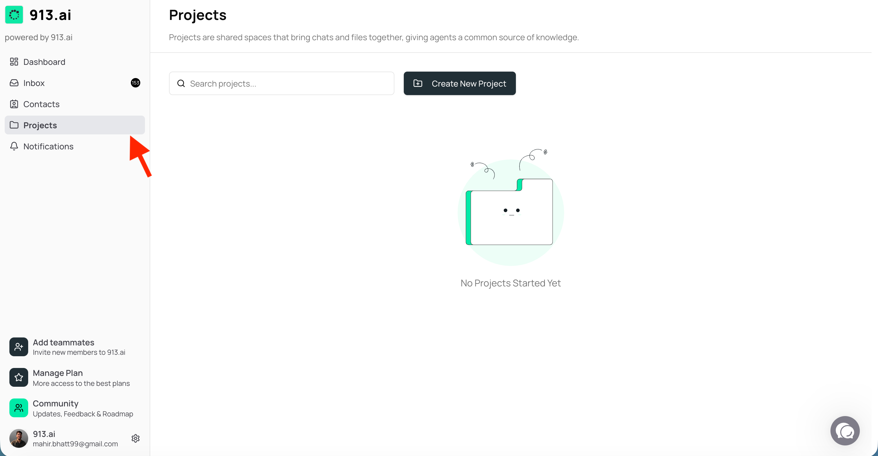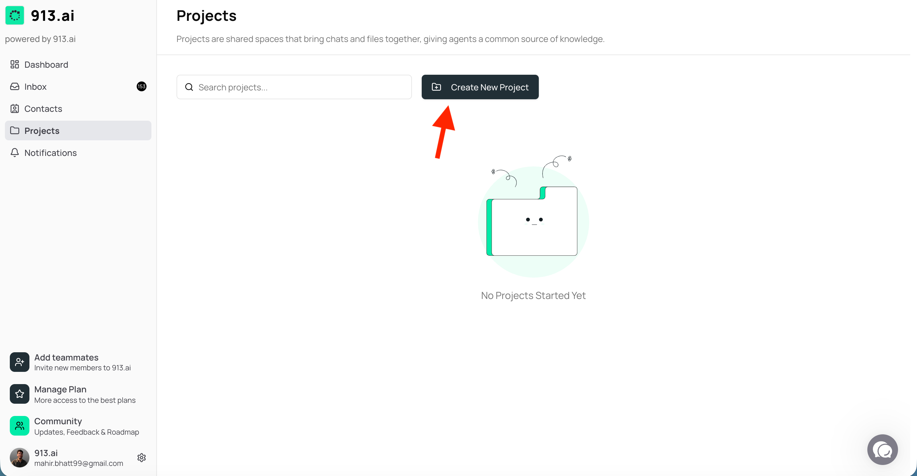 This help guide walks you through every step of creating and managing Projects in 913.ai — from setting up your first Project to collaborating with teammates and AI agents. It explains how to name and describe Projects, add members, upload files, and start chats — all with clear examples tailored for insurance, finance, legal, and HR teams. The guide also clarifies how Projects differ from general inbox conversations and how shared memory keeps your work connected.