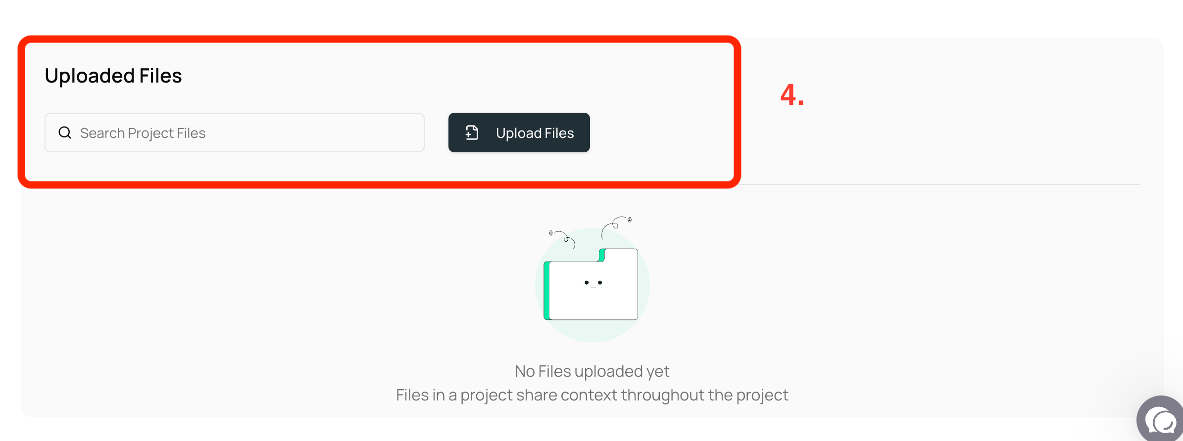 • When you first create a Project there are no chats and no files yet. You add them as you start working.