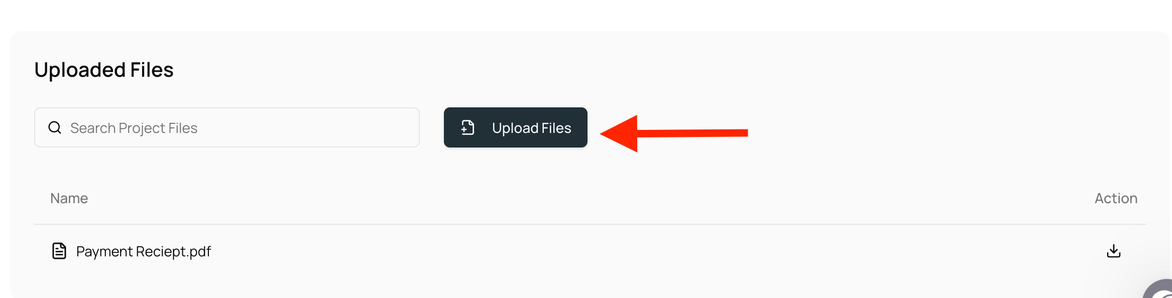4. Files area where you can upload documents, PDFs, spreadsheets and images that belong to this Project. You can upload multiple files at one time by clicking on “Upload Files” button.