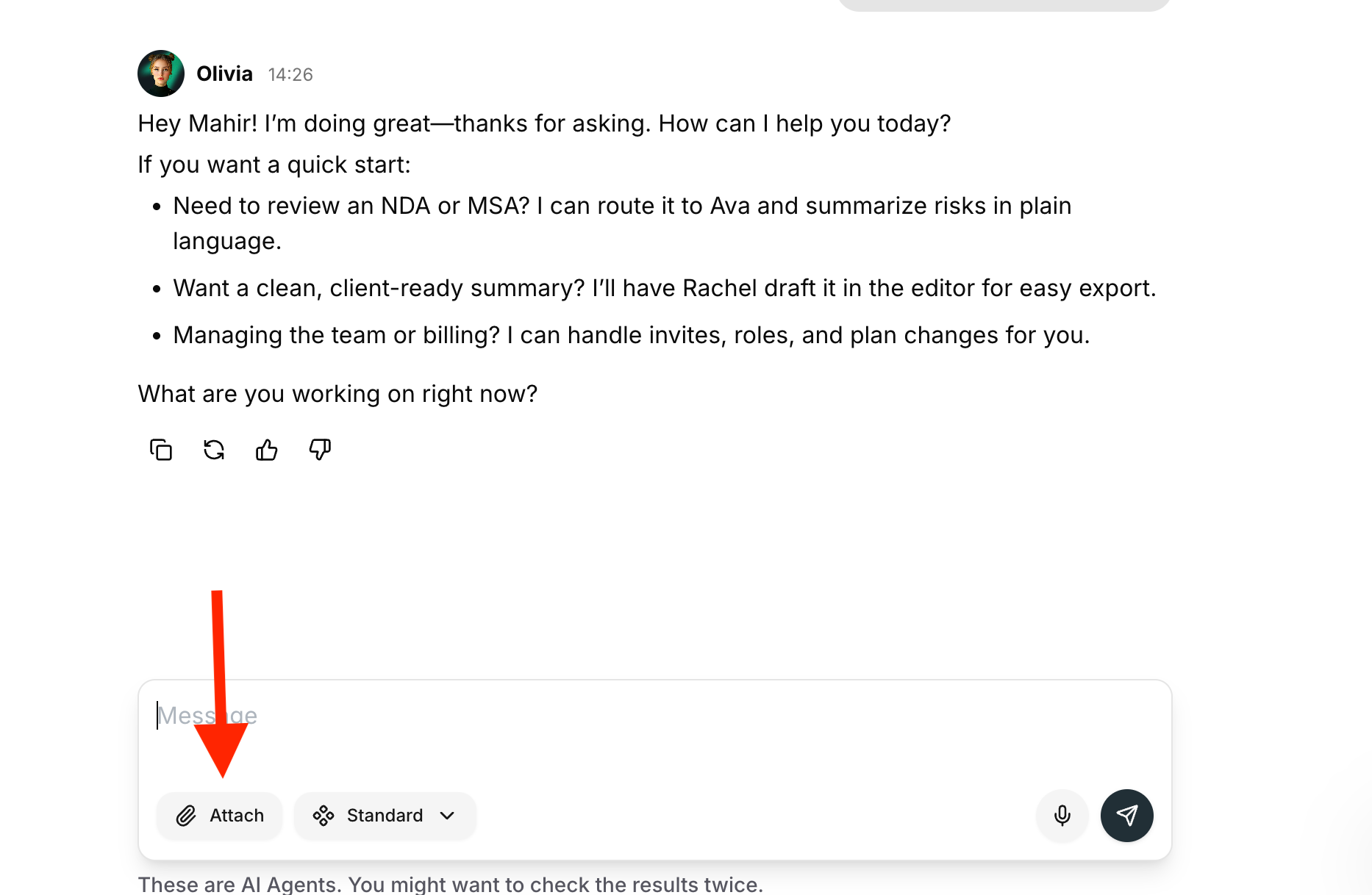 • Start a chat with the right agent and reference your files.