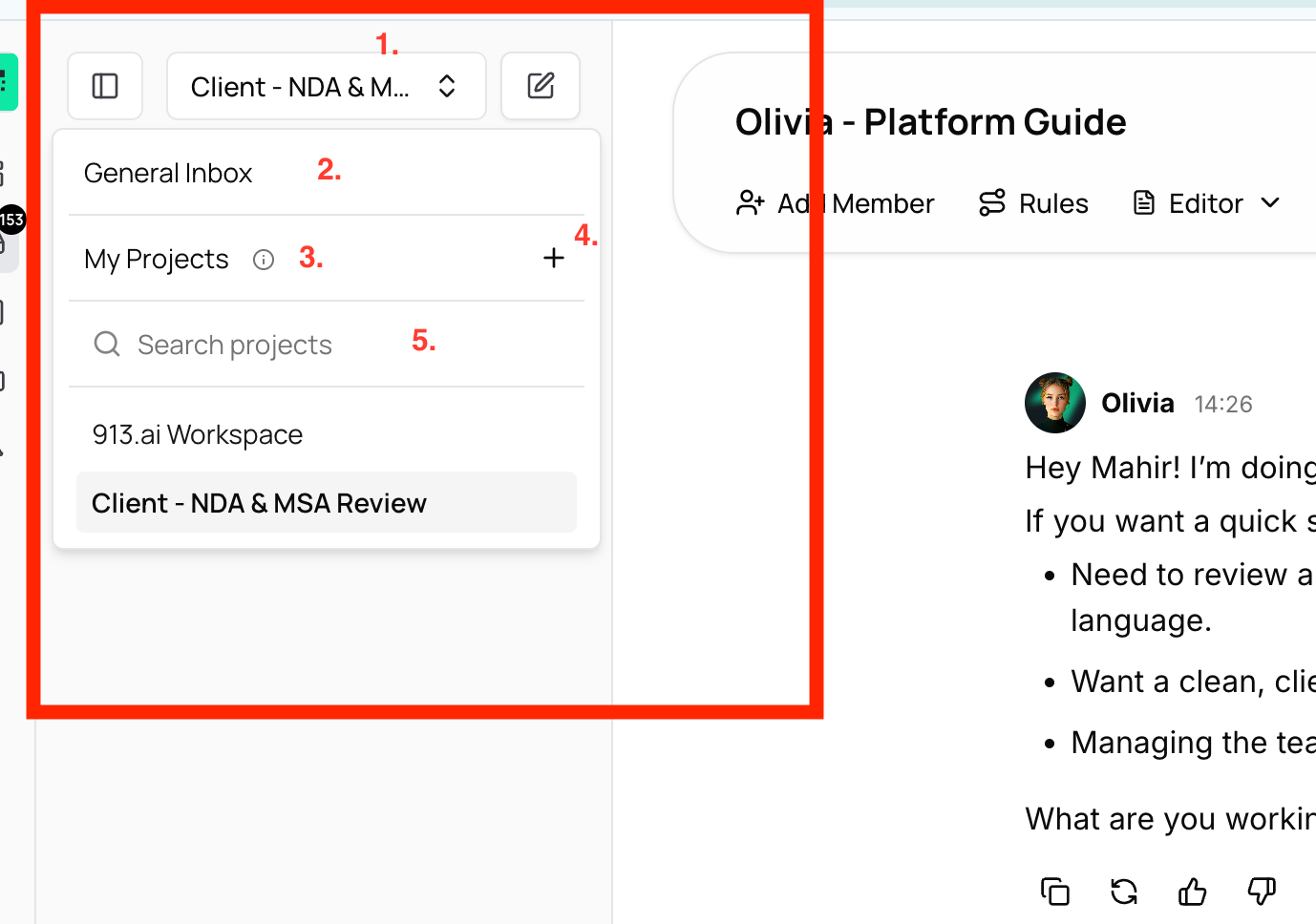 2. General Inbox takes you to non project conversations for quick one off work. These chats are separate from Project work.